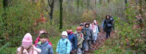 Ci mettiamo ora tutti in fila e ci incamminiamo all'interno del bosco, in silenzio, con le orecchie, il naso e gli occhi bene aperti.