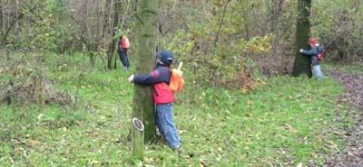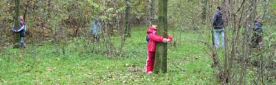 Proseguiamo il cammino nel bosco alla ricerca di una zona con un po' di alberi liberi per poter effettuare la seconda attivtà: dovremo abbracciarli, sentirli con le mani, le braccia, la pancia, e .... con la guancia.