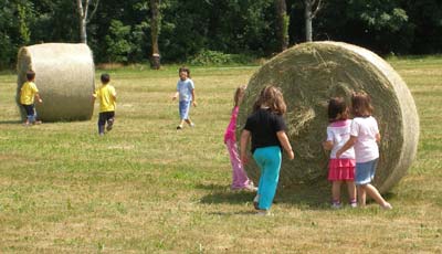 Lungo la strada incontriamo dei grossi rotoloni di erba taglata e seccata ... riusciamo pure a farne rotolare alcuni ...