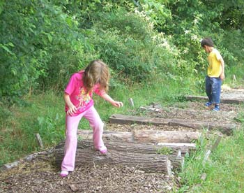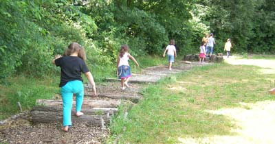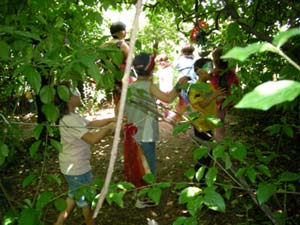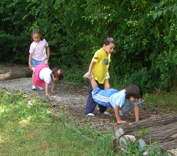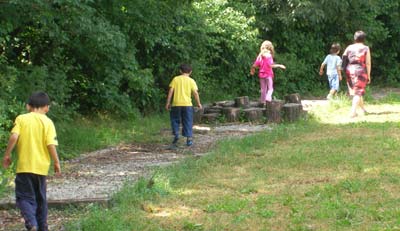 Poi, uno alla volta i bambini percorrono il sentiero, ad occhi chiusi e guidati dalla corda.