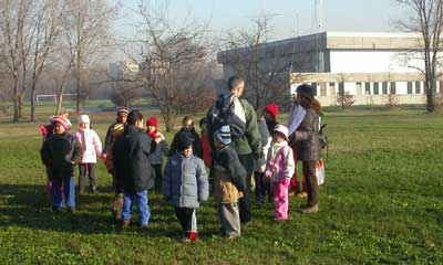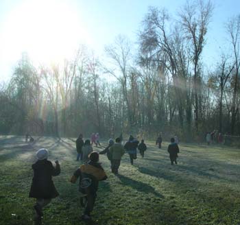 Dopo aver fatto merenda ci dividiamo in tre gruppi, ognuno dei quali