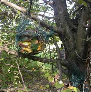 oggetti che profumano e fanno rumore appesi agli alberi, costruiti e appesi