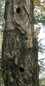 Si tratta di nidi di picchio. Intorno a noi, lungo il viale dei pioppi