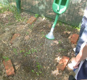Ora a turno ci dedichiamo all'innaffiatura, non solo delle nostre, ma anche di quelle realizzate da altre classi, che hanno bisogno di essere bagnate.