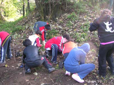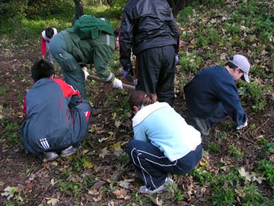 Per prima cosa facciamo un po' di pulizia, togliendo tutti i rametti che sono presenti in terra e depositandoli in una delle buche presenti, per far si che poco alla volta si decompongano e divengano humus.
