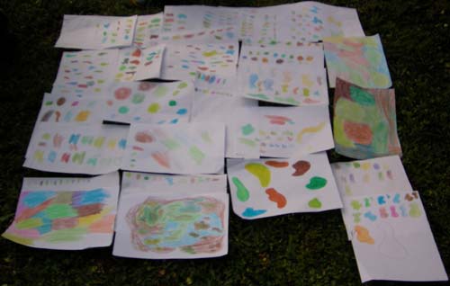 Qualche volta i colori sono mescolati tra di loro. I colori che avete utilizzato sono: verde, giallo, rosso, azzurro, marrone, arancione, grigio, bianco, viola... Una bella varietà!