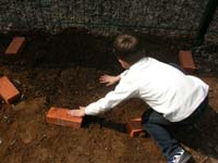 2 - posizionare 6 mattoni per aiuola "a ferro di cavallo" cosi da delimitare bene la zona in cui metteremo le pervinche