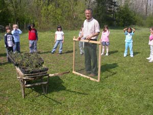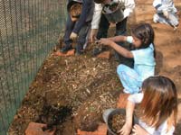 Ecco come setacciare la terra. Massimo vi spiega e poi un gruppetto di voi continua solo, fino a produrre questo bel cumulo di terra a grana fine, priva di rametti e foglie.