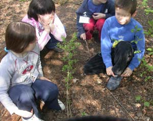 Gli alberi stanno tutti bene, tranne uno che non trovate più. Il gruppo che non trova più il suo albero "adotta" una piccola piantina di acero che sta nascendo da un seme caduto da qualche albero adulto.