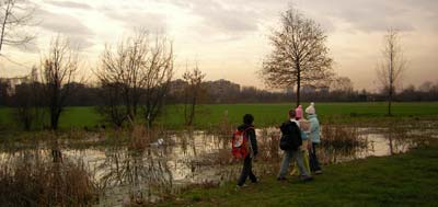 Incontro la classe 4a nei pressi del ponte pedonale che collega la montagnetta alla Villa Torretta.