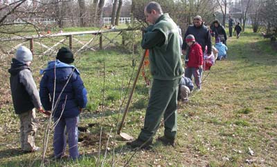 Oggi siamo qui per piantumare, cioè piantare gli alberelli che vi sono state consegnati: 5 piantine di sanguinello, 5 di acero campestre, 3 di spincervino, 2 di agrifoglio.