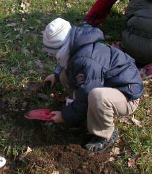Scaviamo a coppie, piantumando una piantina per volta.
