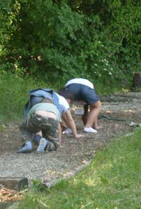 Finalmente posso togliermi le scarpe, per il "bagno" quotidiano di erba. Lo fate anche voi! Quindi ci inoltriamo lungo il percorso multimateriale che abbiamo vicino a noi.