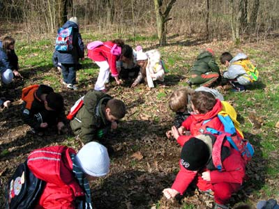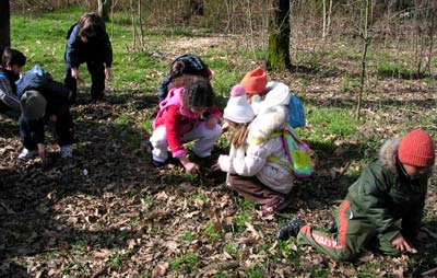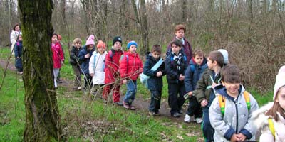 E adessi, per continuare la nostra mattinata ... ci mettiamo in fila: dovrete seguirmi, nel bosco, con la bocca chiusa e orecchie, naso, occhi bene aperti!