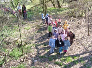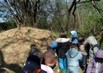 Ora che le piante sono protette, ci dirigiamo verso un punto del boschetto dove c'è un acero, uguale a quelli che avete piantato voi oggi....solo che è un po più grande...ha ben 50 anni!!