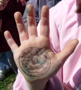 Adesso...tutti con il braccio steso e il palmo della mano rivolto al cielo! Sta per farvi visita.....il Maialino Salvanatura! Ecco il timbrino, così siete tutti affiliati alla congregazione del salvadanaio dei semi. Dei veri "maialini" salvanatura.