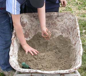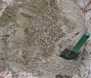 Terminato il lavoro prepariamo un miscuglio di semi e sabbia, in modo da poterli spargere bene.