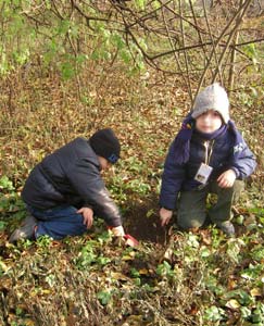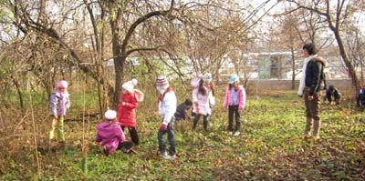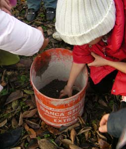 Spiego ai bambini le semplici, ma fondamentali, operazioni da farsi per piantare correttamente una piccola piantina di quercia, quindi si pianta .... e .... si schiaccia la terra con i piedi ...