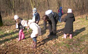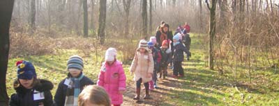Adesso ci mettiamo in fila per iniziare la nostra prima attività: dovrete seguirmi, nel bosco, con la bocca chiusa e orecchie, naso, occhi bene aperti!