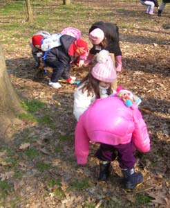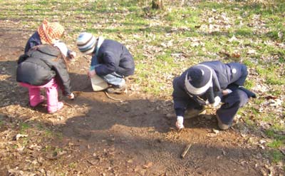 Adesso ci prepariamo ad usare le palette che alcuni di voi hanno portato. Si scava la terra!
