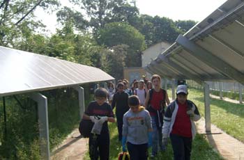 Siamo vicini al cancello d'ingresso dell'impianto fotovoltaico: ovvero la strutture a pannelli che ci permette di trasformare l'energia del sole in enegia elettrica (per il funzionamento della cascina del Parco Nord).