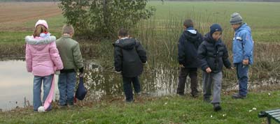 Anche lo stagno, così come i prati ed i boschi, è stato creato dall'uomo, e insieme proviamo ad immaginare come: scavando una buca, mettendo uno strato che non faccia passare l'acqua, immettendo acqua, piantando specie vegetali... e gli animali? Loro sono venuti da soli!