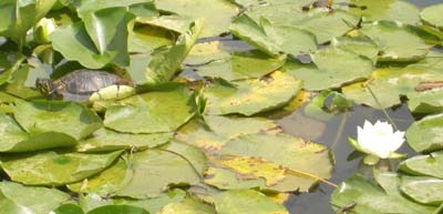 I pesci ad esempio sono stati portati qui da alcuni pescatori, le tartarughe invece da qualcuno che abitava qui in zona e che non poteva più tenerle. Questo però nel corso del tempo ha creato dei problemi perchè le numerose tartarughe si sono mangiate le uova di rana (e anche di vari insetti e molluschi) e questo ha impedito lo svilupparsi corretto della vita acquatica. Bisogna quindi imparare a rispettare gli ecosistemi, senza alterarne gli equilibri: non comperate le tartarughe!!!
