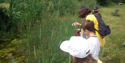 Raccogliamo qualche campione di alga e di tifa immersa nell'acqua: osserviamo un pò di piccoli animaletti: le chioccioline d'acqua, il gerride e la bellissima libellula imperatore. Oltre alle uova di chiocciolimna e di qualche altro insetto sconosciuto.