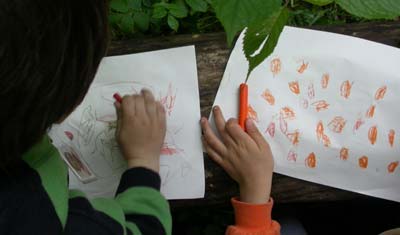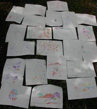 con macchie di dimensioni diverse...piccole e grandi...chi ha riempito tutto il foglio e chi ha lasciato tante parti bianche...c'è chi ha usato pochi colori e chi tanti...e poi c'è anche chi ha sovrapposto diversi colori, perchè riprodurre i colori della natura non è sempre così facile!