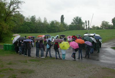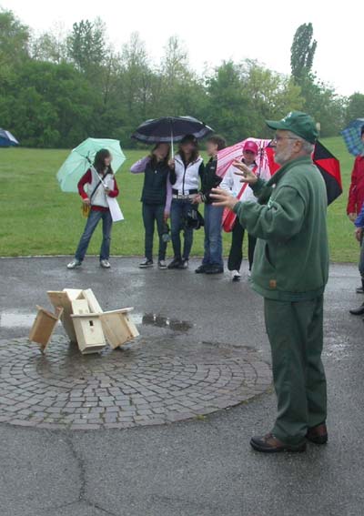 Ma questa era solo la prima parte dell'uscita...adesso ci rechiamo ad alcuni laghetti del Parco per osservarli; prima di tutto però proviamo a riflettere su come sono stati realizzati questi stagni, che sono artificiali, cioè creati dall'uomo. Inizialmente è stata fatta una grossa buca nel terreno, dopodiché è stato depositato sul fondo uno strato di un materiale impermeabile: l'argilla. La buca è stata quindi riempita d'acqua; pian piano, grazie ai semi trasportati dal vento sono cresciute delle piante acquatiche come la tife, la menta acquatica o le ninfee.