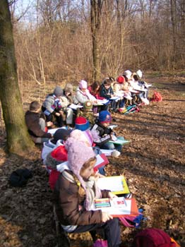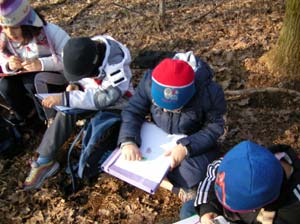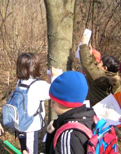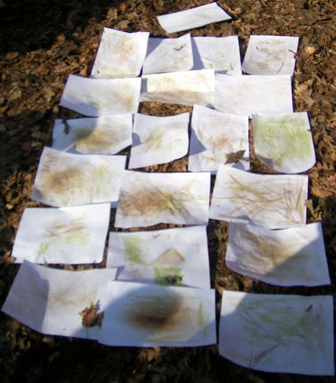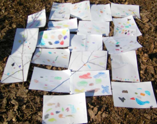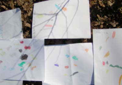 Ogni bambino tira fuori cartelletta, foglio e pastelli a cera: il nostro compito sarà quello di "catturare" il maggior numero possibile di colori presenti nel bosco ... e riprodurli sul foglio sotto forma di macchia.